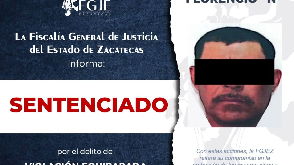 Florencio «N» fue sentenciado a 47 años y tres meses de prisión por violación equiparada agravada, informó la Unidad de Investigación Mixta del Distrito de Ojocaliente, Zacatecas.