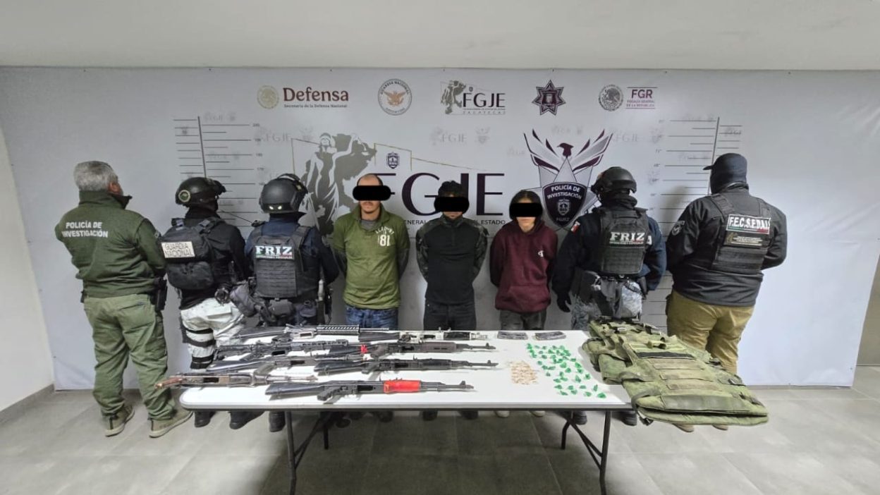 En el municipio de Tabasco, Zacatecas, fueron detenidos tres presuntos integrantes de una célula delictiva en una acción que estuvo a cargo de la Fuerza de Reacción Inmediata Zacatecas (FRIZ), el Ejército Mexicano, la Guardia Nacional y la Policía de Investigación de la Fiscalía General de Justicia del Estado de Zacatecas (FGJEZ),