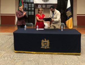 El momento culminante fue la entrega de un reconocimiento por parte de los funcionarios universitarios Alberto Ortiz y Armando Flores de la Torre, bajo los aplausos del público acompañante.
