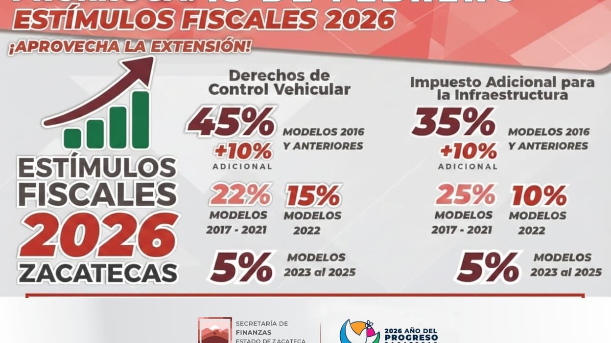 Los estímulos fiscales aplicables durante enero de 2026 para el control vehicular y diversas contribuciones se extienden y estarán vigentes hasta el 15 de febrero, informó la Secretaría de Finanzas en un comunicado.