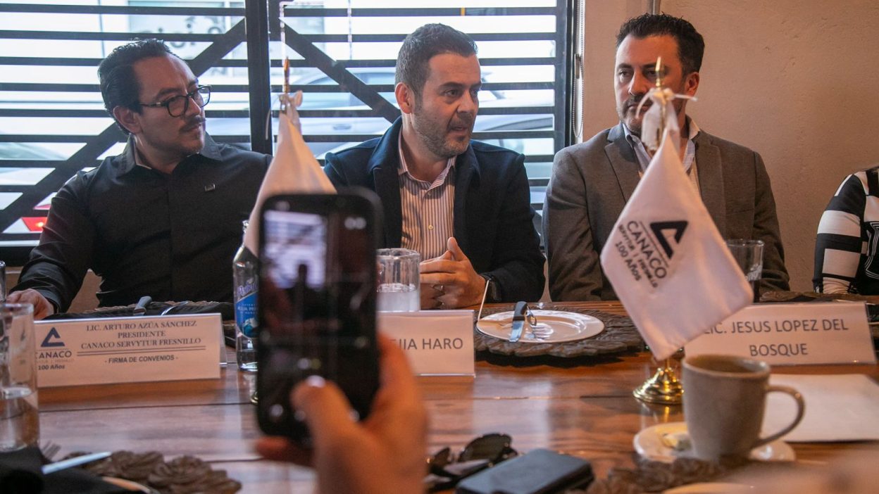 El diputado federal Ulises Mejía Haro sostuvo un encuentro con la mesa directiva de CANACO SERVITUR Fresnillo, encabezada por su presidente, Arturo Azúa Sánchez, refrendó que buscará el fortalecimiento del comercio local como base del desarrollo económico.
