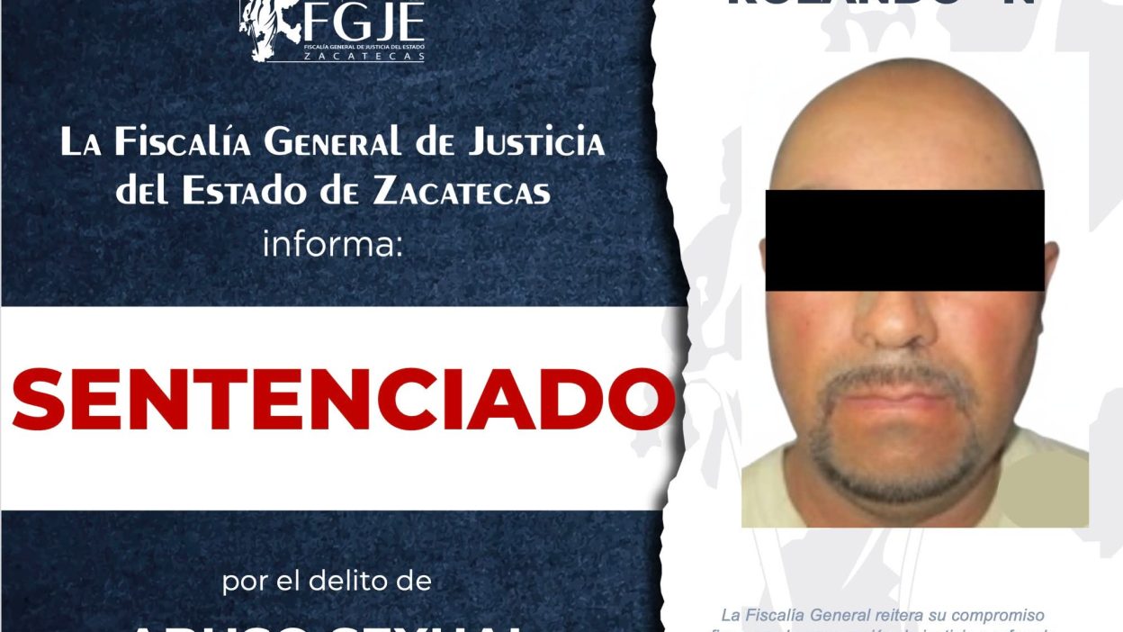 Rolando «N» fue sentenciado a 16 años de prisión y a la reparación del daño por abuso sexual, informó la Unidad Mixta de Tlaltenango, Zacatecas.