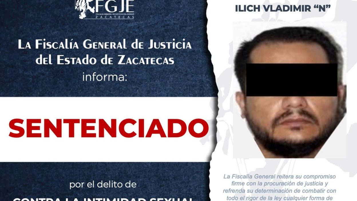 La Unidad de Investigación Mixta de Villanueva, Zacatecas, informó de ña obtención obtuvo sentencia condenatoria contra Ilich Vladimir “N” por el delito contra la intimidad sexual agravada.