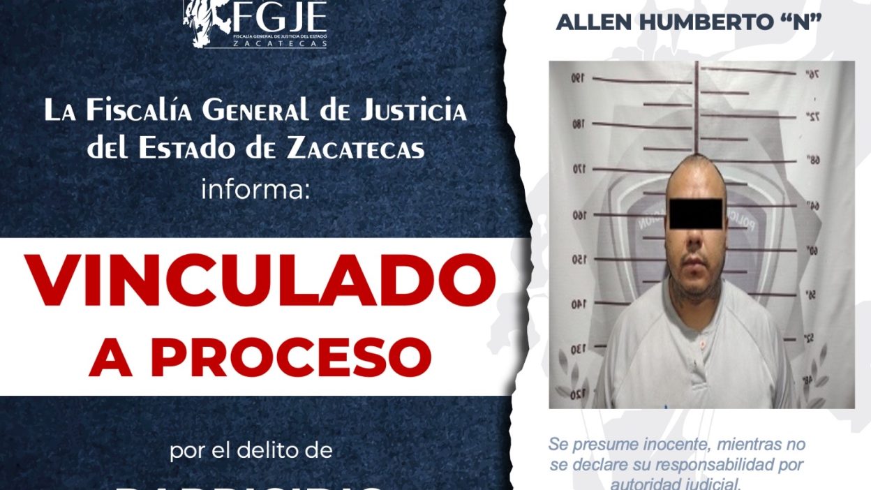 La Fiscalía General de justicia del Estado de Zacatecas (FGJEZ) vinculó a proceso a Humberto N por el delito de parricidio, se le impuso la prisión preventiva como medida preventiva.