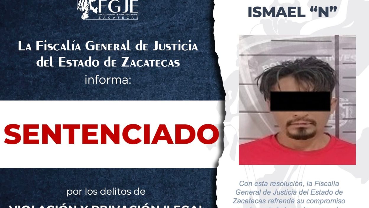 La Fiscalía General de Justicia del Estado de Zacatecas informó que Ismael “N” fue sentenciado a 13 años de prisión, y deberá reparar el daño causado.