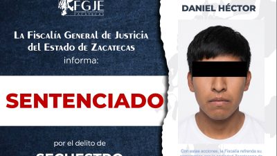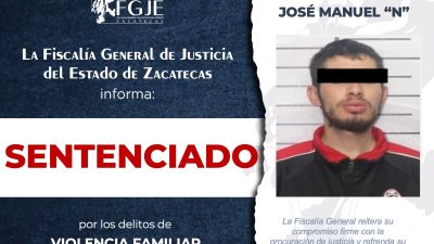 Seguridad1 Min Leer Mario Padillaonenero 22, 2026 Por violencia familiar, sentenciado Por el delito de violencia familiar agravada sucedida en el municipio de Zacatecas, Zacatecas, Daniel Antonio «N», fue sentenciado a dos años…